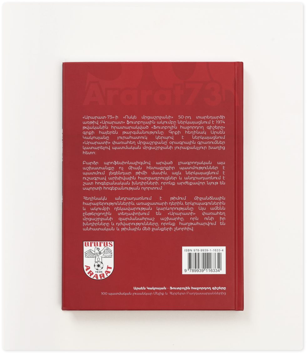 «Արարատ-73»-ի փառահեղ հաղթանակի 50-րդ տարեդարձի առթիվ «Արարատ» ֆուտբոլային ակումբը հրատարակել է Արսեն Կակոսյանի «Գիշերը ֆուտբոլից հետո» գրքի հայերեն թարգմանությունը: Հեղինակը յուրահատուկ լրագրողական ոճով իր օրագրային գրառումներն է կատարում 1973-ի լեգենդար մրցաշրջանի յուրաքանչյուր խաղից հետո: